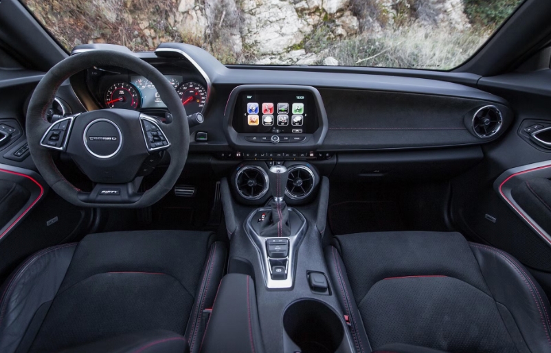 Step inside, and the Camaro ZL1 reveals a cockpit tailored to performance and luxury in equal measure. The driver is greeted with a flat-bottom suede-wrapped steering wheel, magnesium paddle shifters, and supportive Recaro performance seats with contrast stitching. The dashboard is dominated by a 12.3-inch customizable digital cluster and a 13.4-inch infotainment touchscreen with Google integration, wireless Apple CarPlay, and Android Auto. Premium trims feature carbon-fiber inlays, ambient LED lighting, and a Bose 12-speaker surround system. Practical improvements such as increased cargo capacity and better rear visibility show Chevrolet’s commitment to daily usability alongside track readiness.